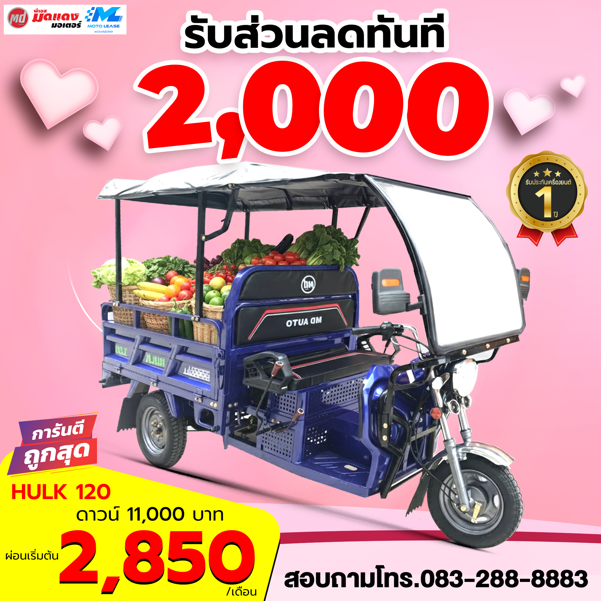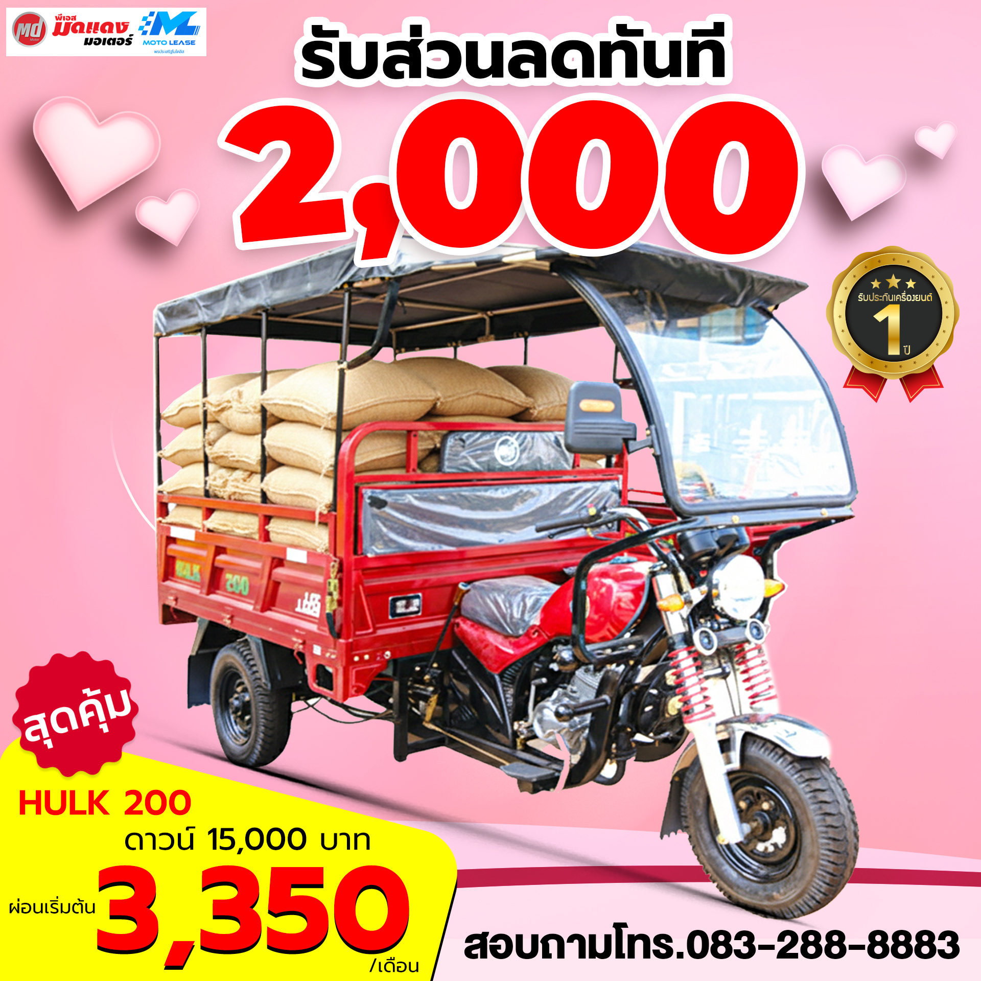 กุมภานี้... มอบความรักให้ "ฮีโร่" ด้วยรถสามล้ออเนกประสงค์ ดาวน์เริ่มที่ 11,000 บาท สนใจรุ่นไหน ทัก Inbox มาเลยจ้า @ps-moddaengmotor เงื่อนไขเป็นไปตามที่บริษัทกำหนด)