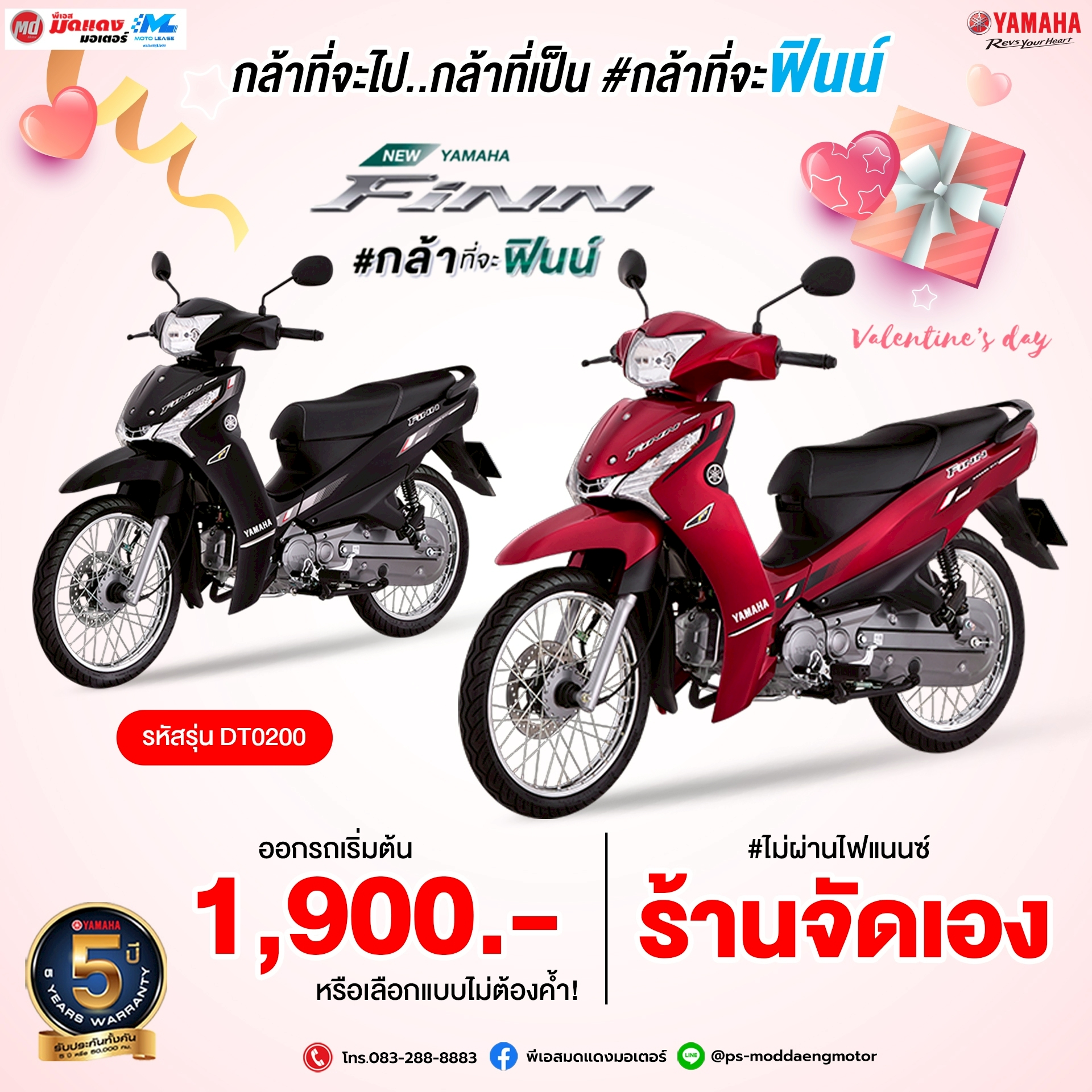กุมภาพันธ์นี้... ถ้ายังไม่มีใครกุมมือ มากำแฮนด์ Yamaha Finn ดีกว่า ดาวน์เริ่มต้น 1,900 บาท สนใจทักแชทมาเลยจ้า Line@ : @ps-moddaengmotor โทร. 083-288-8883 เงื่อนไขเป็นไปตามบริษัทกำหนด