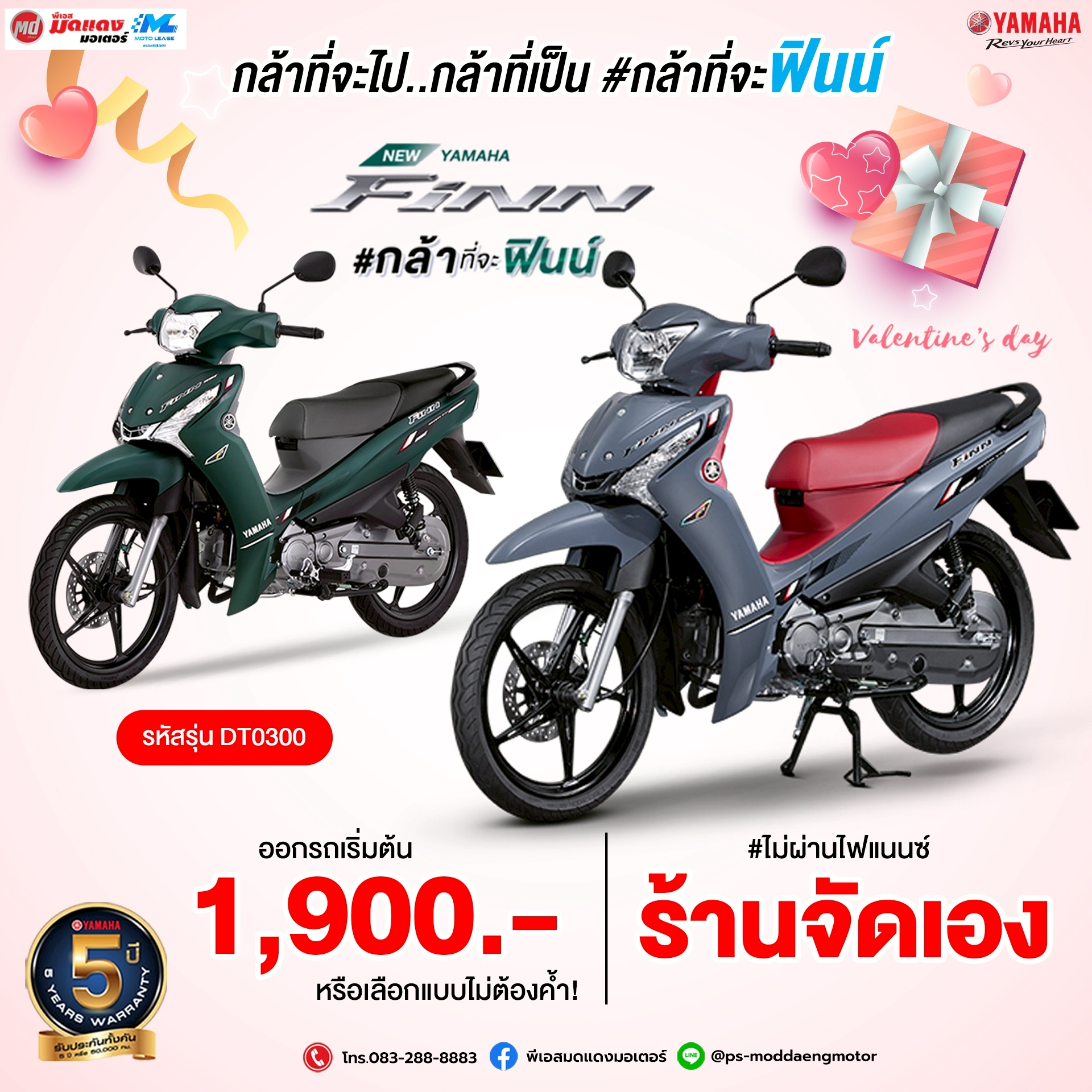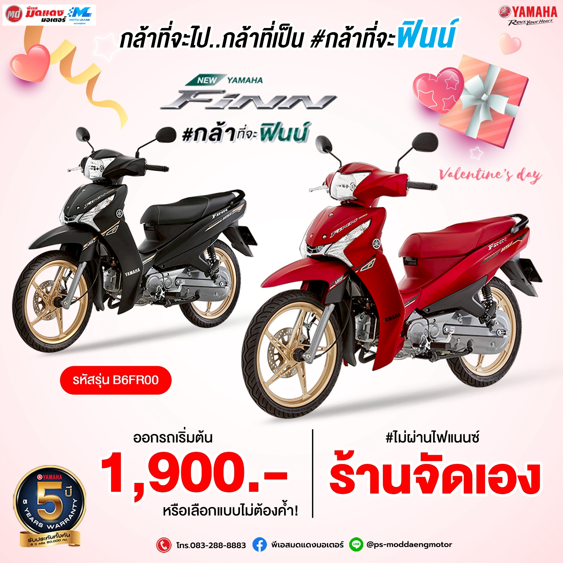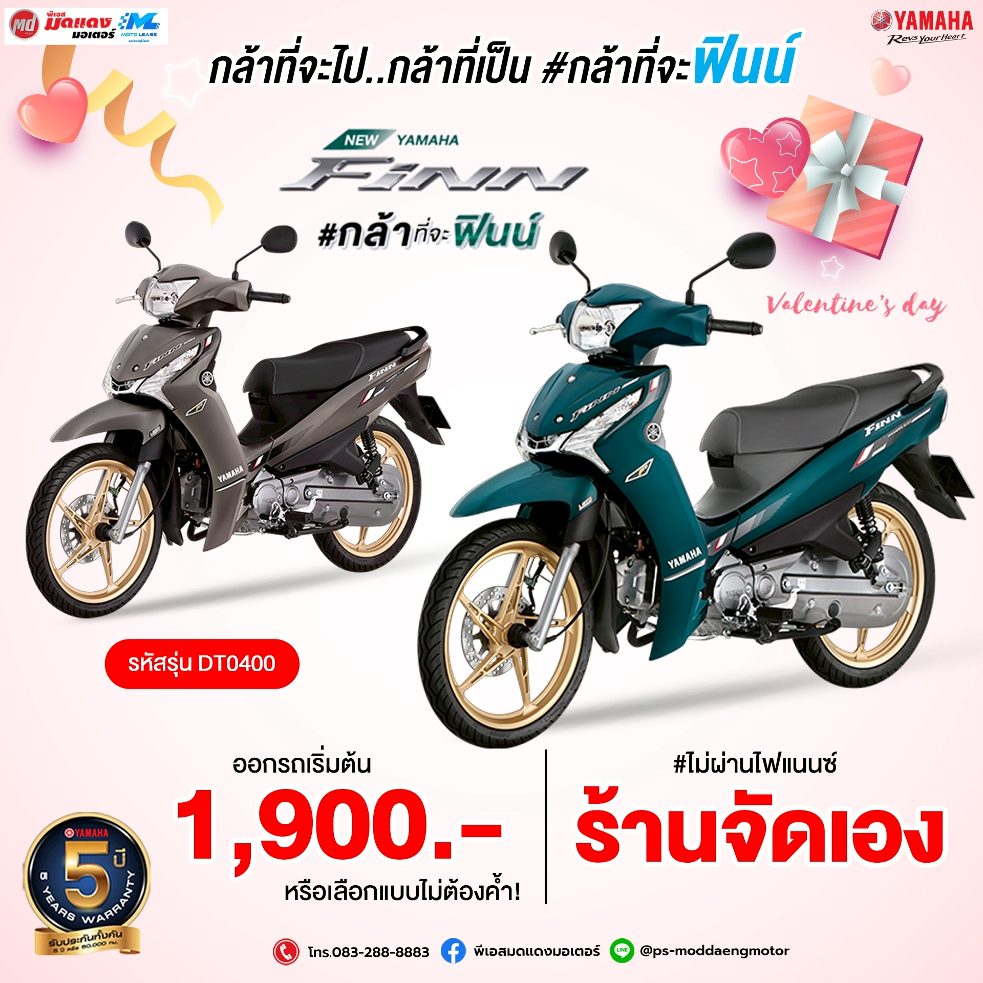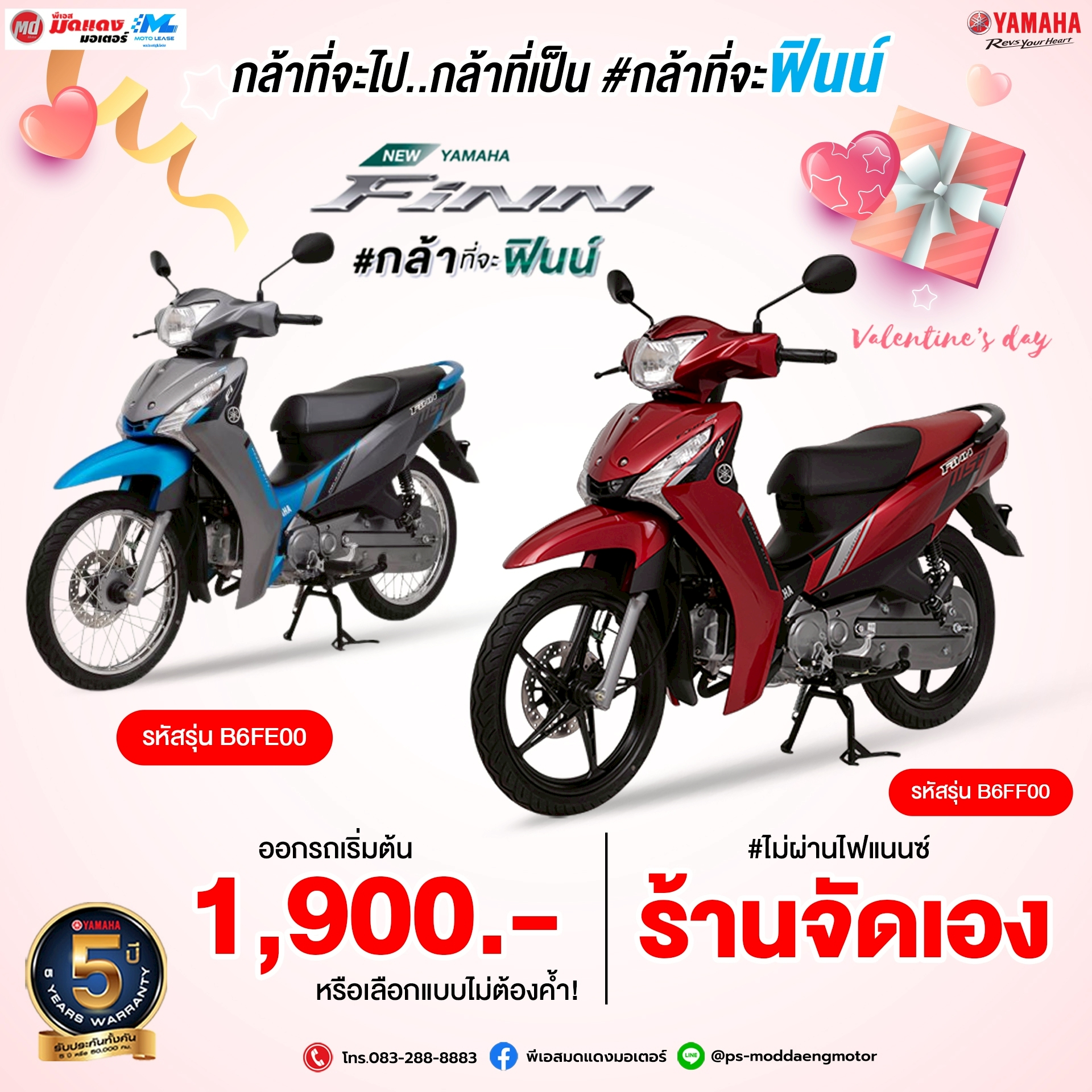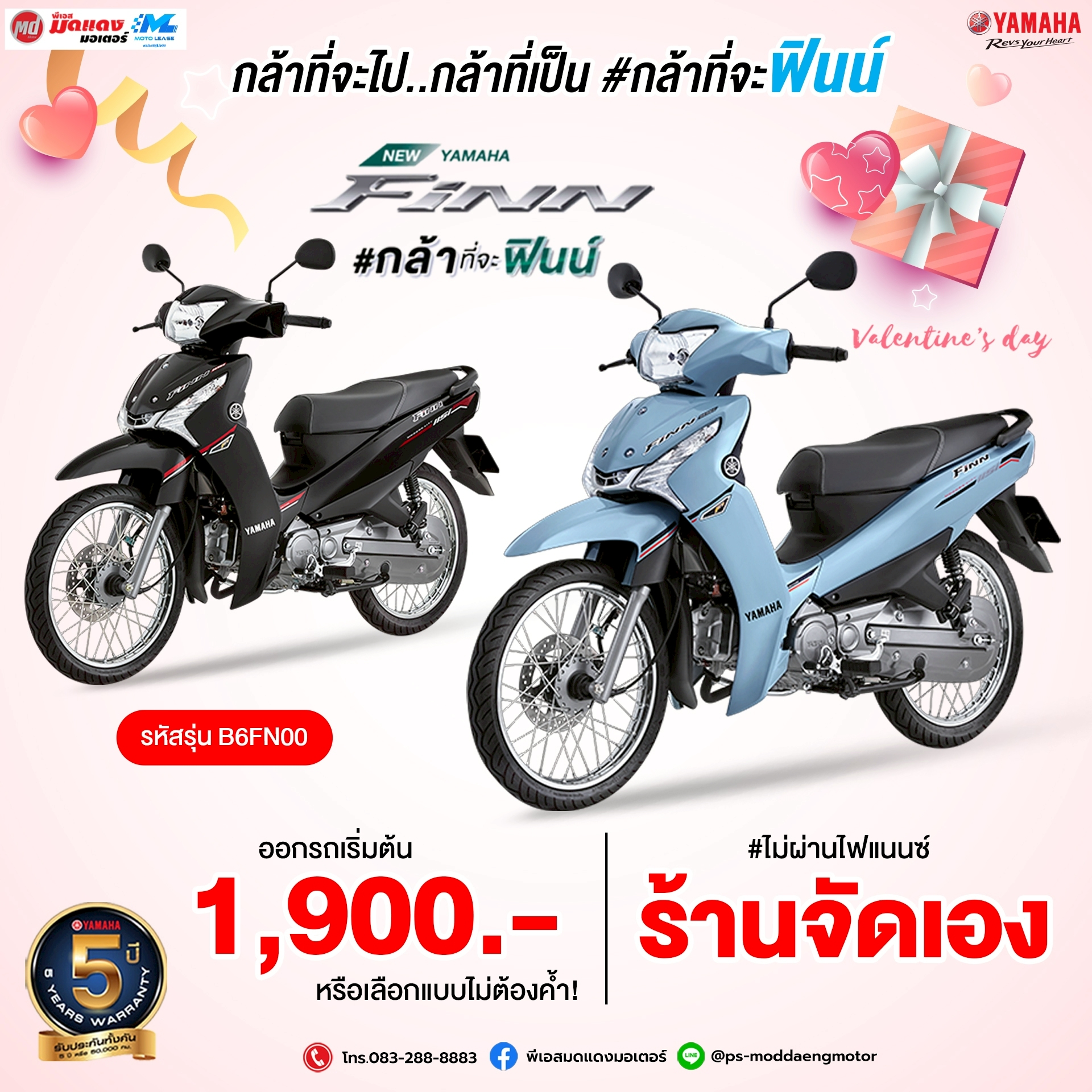 กุมภาพันธ์นี้... ถ้ายังไม่มีใครกุมมือ มากำแฮนด์ Yamaha Finn ดีกว่า ดาวน์เริ่มต้น 1,900 บาท สนใจทักแชทมาเลยจ้า Line@ : @ps-moddaengmotor โทร. 083-288-8883 เงื่อนไขเป็นไปตามบริษัทกำหนด